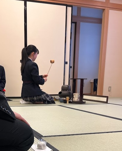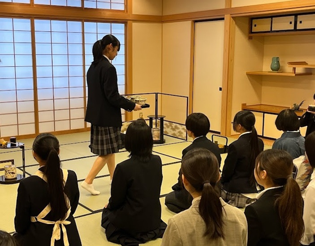 10月26日(金)2年に1度の合同のお茶会に茶道部として参加しました。周辺の高校や短大・専門学校生と交流し、お点前の披露、半東、お運び(お茶やお菓子をお客様にお出しする)をしました。松濤祭後はお茶会に向けて練習を重ねてきましたが、会場は普段にはない厳かな雰囲気で、生徒はとても緊張した様子でした。学校の外でお茶を点てたり、お茶をいただいたりすることはほとんどないので、緊張感のある会場で非常に貴重な体験ができました。
