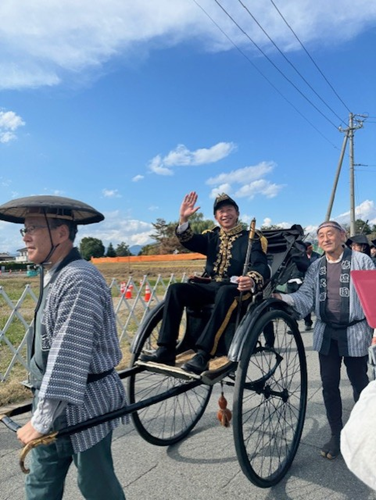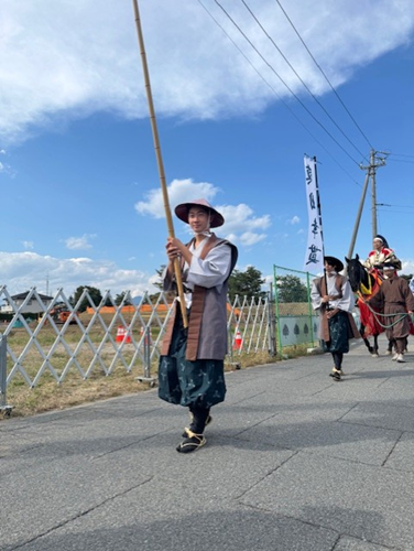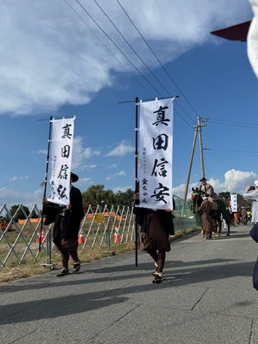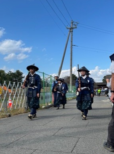10月11日(土)・12日(日)に、記念すべき第70回を迎える「松代藩 真田十万石まつり」が開催されました。今回のテーマは「松代藩 真田家十代ご出陣!」。11日(土)には、歴代藩主が一堂に会する時代絵巻のような大名行列が、松代の町を華やかに彩りました。真田家の歴史と伝統を感じられる特別な一日に、朝早くから16名の松高生たちも地域の方々と準備を行い、一緒に出陣しました。秋晴れに恵まれ、汗をかきながらも、地域の方々と松代町を盛り上げる松高生の姿はとても凛々しかったです。
